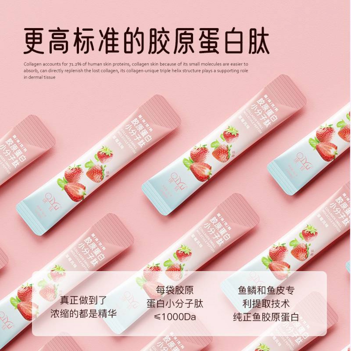 精选小分子胶原蛋白肽,搭配天然草莓果粉,酸甜元气口感激发每日活力。靶向补充肌肤弹性纤维,促进锁水保湿,焕亮暗沉粗糙。