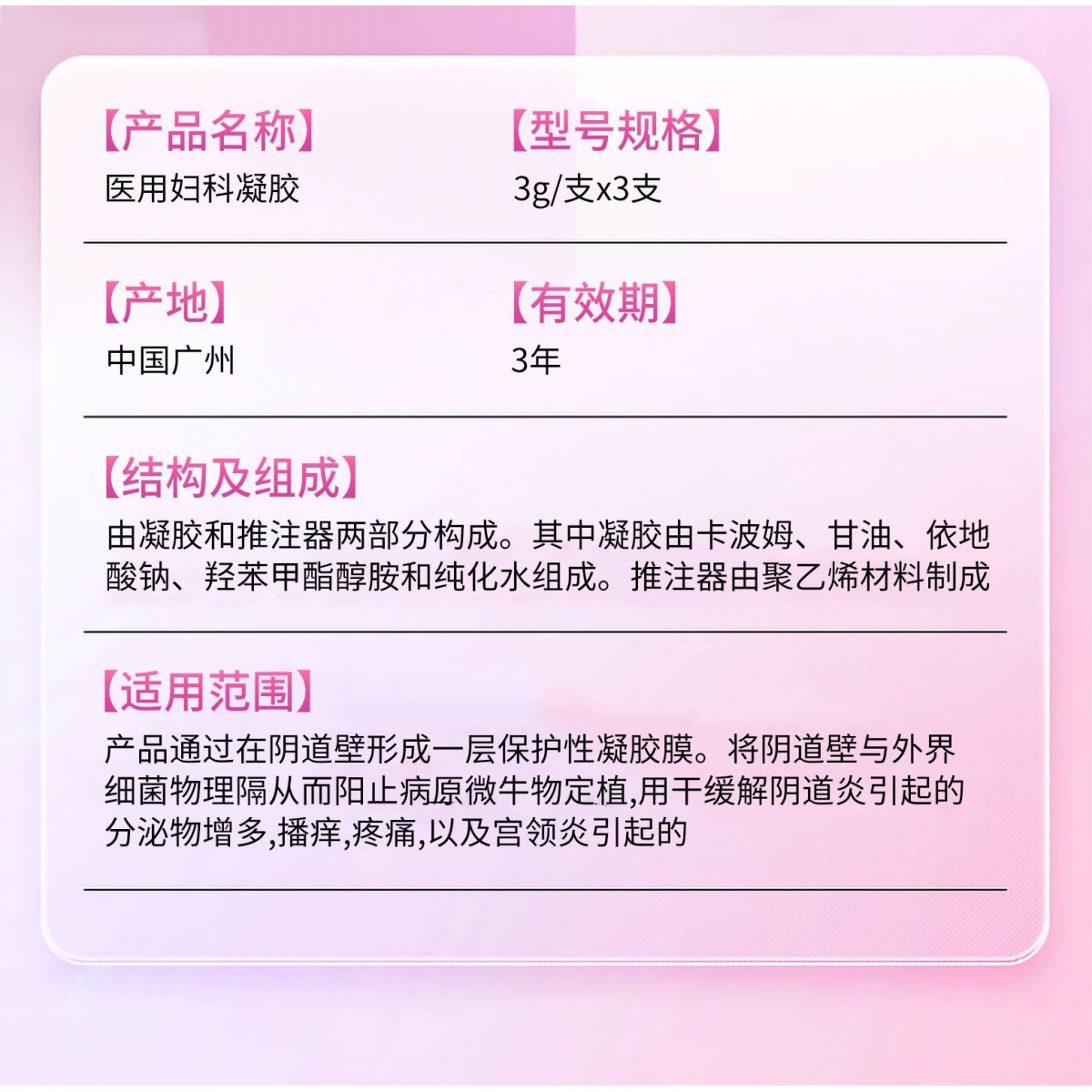 商品名称:医用妇科凝胶/3支套装