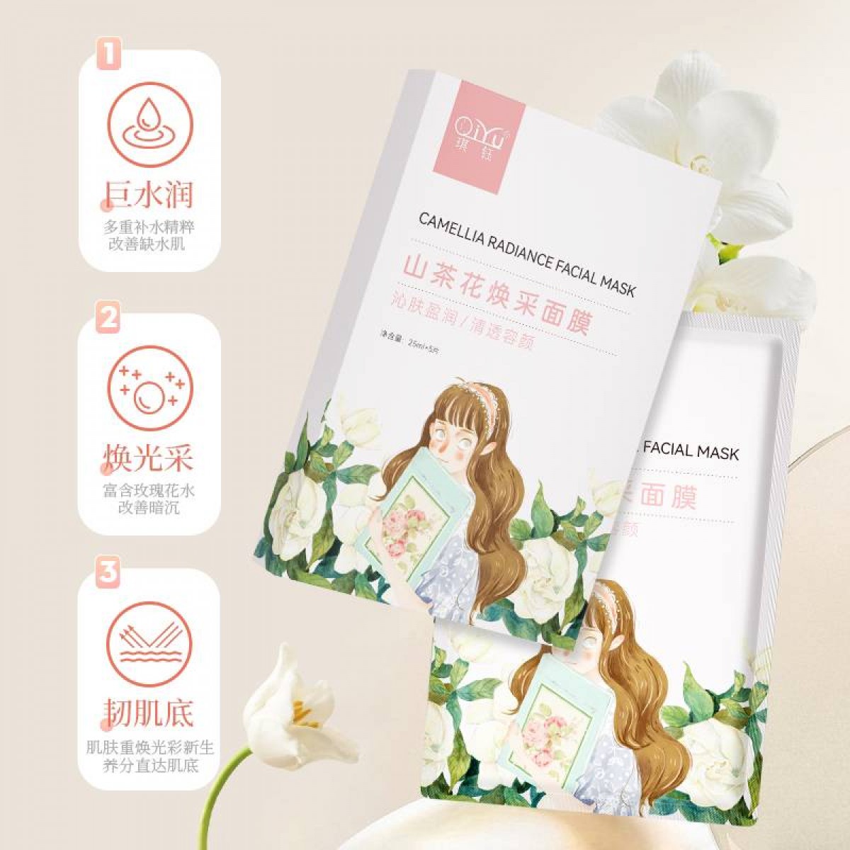 琪钰山茶花面膜补水美白去黄气暗沉熬夜提亮保湿柔肤烟酰胺海藻糖焕采肌肤一敷即美 5片*1盒