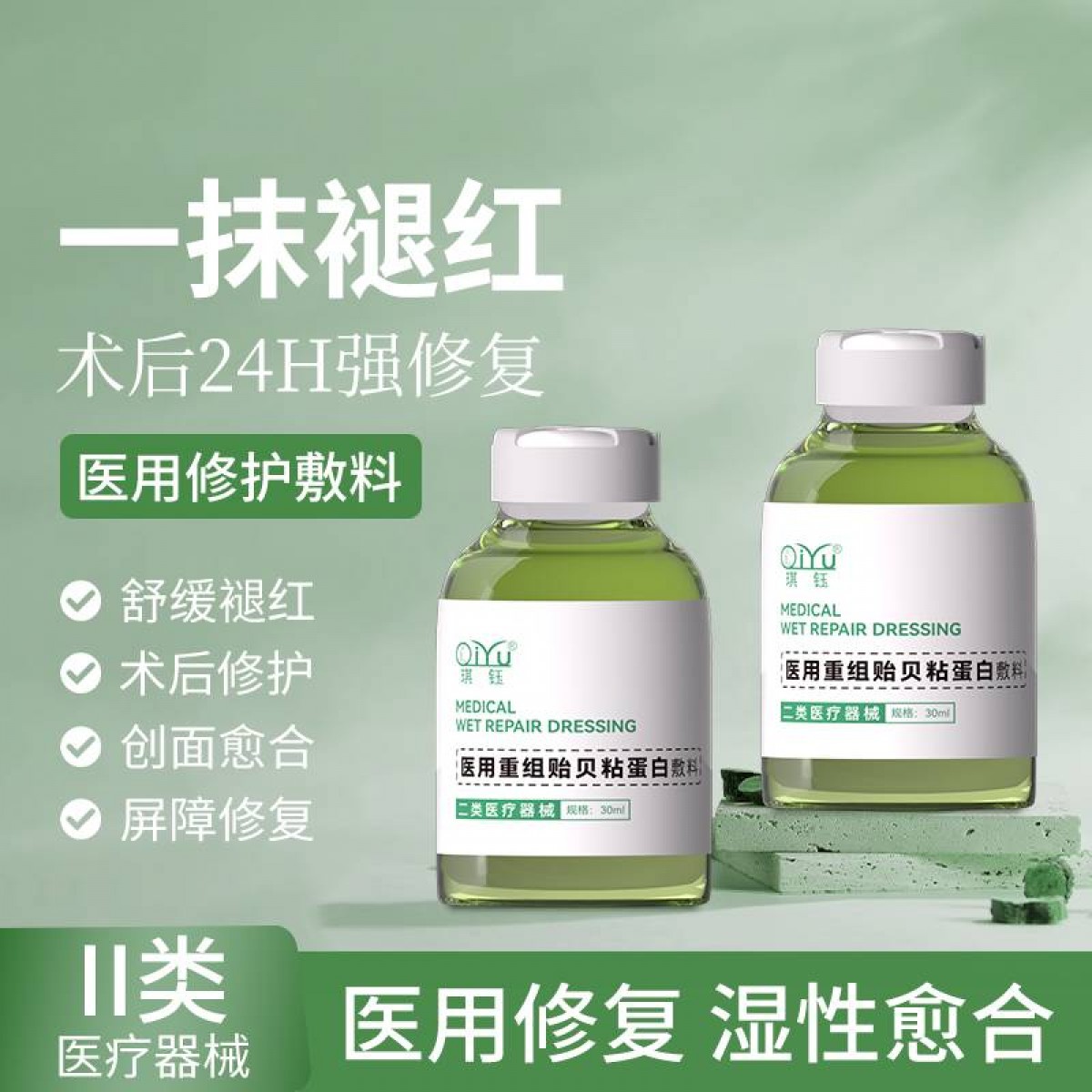 医用重组贻贝粘蛋白敷料小吊瓶(绿)抑菌消炎/敏感泛红/暗沉干燥/助力伤口/修复肌肤屏障改善肌肤问题30ml*5瓶